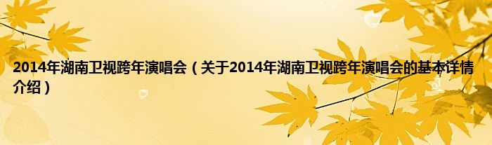 本文关于2014年湖南卫视跨年演唱会的基本详情介绍就讲解完毕,希望对大家有所帮助。