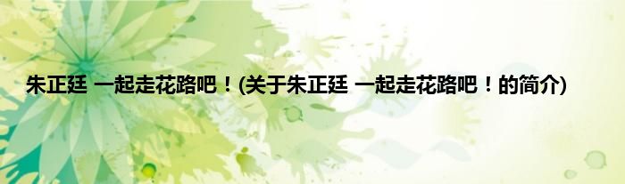 朱正廷 一起走花路吧!(关于朱正廷 一起走花路吧!的简介)