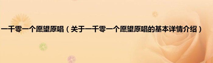 一千零一个愿望原唱(关于一千零一个愿望原唱的基本详情介绍)