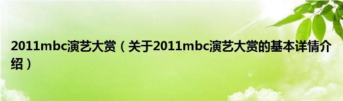 本文关于2011mbc演艺大赏的基本详情介绍就讲解完毕,希望对大家有所帮助。