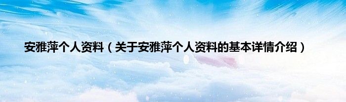 本文关于安雅萍个人资料的基本详情介绍就讲解完毕,希望对大家有所帮助。