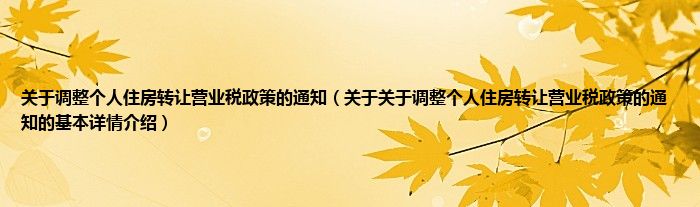 关于调整个人住房转让营业税政策的通知(关于关于调整个人住房转让营业税政策的通知的基本详情介绍)