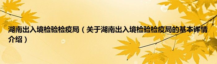 本文关于湖南出入境检验检疫局的基本详情介绍就讲解完毕,希望对大家有所帮助。