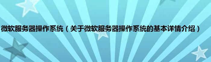 本文关于微软服务器操作系统的基本详情介绍就讲解完毕,希望对大家有所帮助。