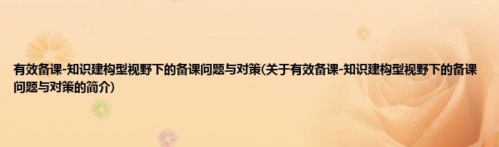 本文关于有效备课-知识建构型视野下的备课问题与对策的简介就讲解完毕,希望对大家有所帮助。