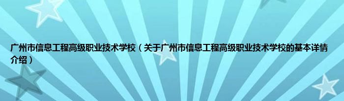 本文关于广州市信息工程高级职业技术学校的基本详情介绍就讲解完毕,希望对大家有所帮助。