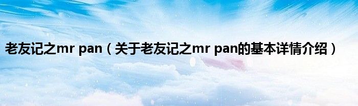 本文关于老友记之mr pan的基本详情介绍就讲解完毕,希望对大家有所帮助。