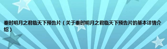 本文关于秦时明月之君临天下预告片的基本详情介绍就讲解完毕,希望对大家有所帮助。