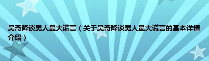 本文关于吴奇隆谈男人最大谎言的基本详情介绍就讲解完毕,希望对大家有所帮助。