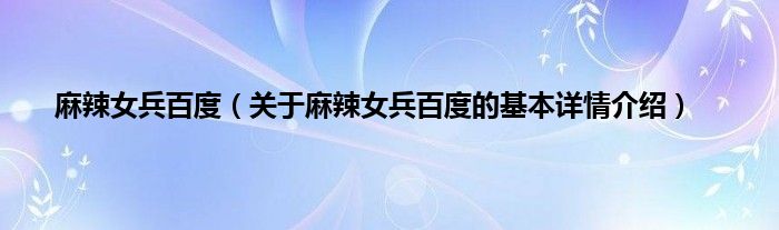 本文关于麻辣女兵百度的基本详情介绍就讲解完毕,希望对大家有所帮助。