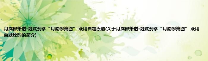 本文关于月底修箫谱·题沈蕊芗“月底修箫图”,既用自题原韵的简介就讲解完毕,希望对大家有所帮助。