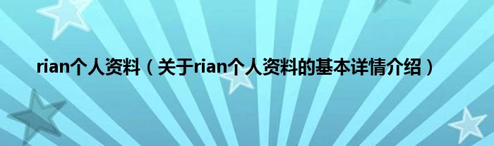 本文关于rian个人资料的基本详情介绍就讲解完毕,希望对大家有所帮助。