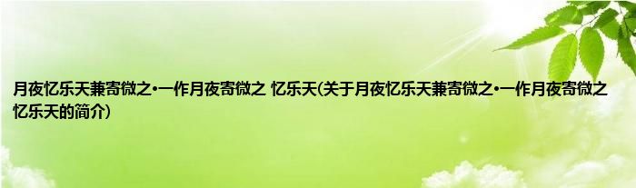 月夜忆乐天兼寄微之·一作月夜寄微之 忆乐天(关于月夜忆乐天兼寄微之·一作月夜寄微之 忆乐天的简介)