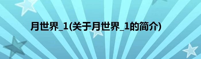 本文关于月世界_1的简介就讲解完毕,希望对大家有所帮助。
