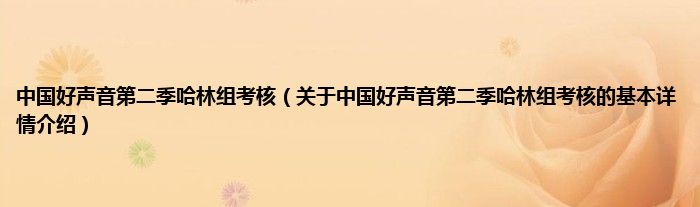 本文关于中国好声音第二季哈林组考核的基本详情介绍就讲解完毕,希望对大家有所帮助。