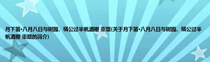 本文关于月下笛·八月八日与树园、橘公过半帆酒榭,重题的简介就讲解完毕,希望对大家有所帮助。