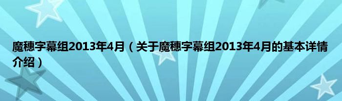 本文关于魔穗字幕组2013年4月的基本详情介绍就讲解完毕,希望对大家有所帮助。