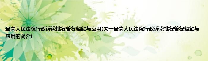 大家好,最高人民法院行政诉讼批复答复释解与应用,关于最高人民法院行政诉讼批复答复释解与应用的简介很多人还不知道,现在让我们一起来看看吧!