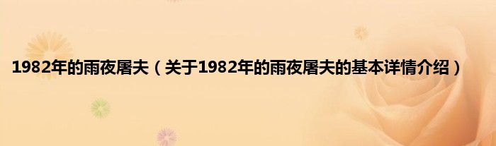 本文关于1982年的雨夜屠夫的基本详情介绍就讲解完毕,希望对大家有所帮助。