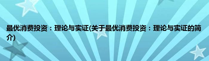 最优消费投资:理论与实证(关于最优消费投资:理论与实证的简介)