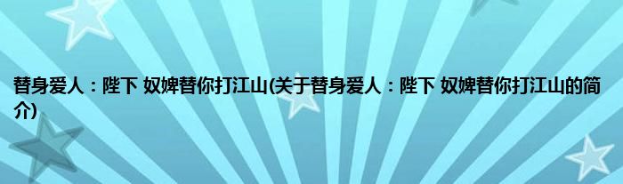 本文关于替身爱人:陛下,奴婢替你打江山的简介就讲解完毕,希望对大家有所帮助。