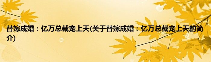 替嫁成婚:亿万总裁宠上天(关于替嫁成婚:亿万总裁宠上天的简介)