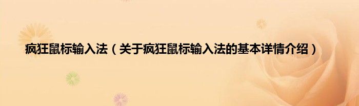 疯狂鼠标输入法(关于疯狂鼠标输入法的基本详情介绍)