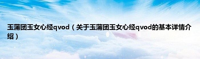本文关于玉蒲团玉女心经qvod的基本详情介绍就讲解完毕,希望对大家有所帮助。