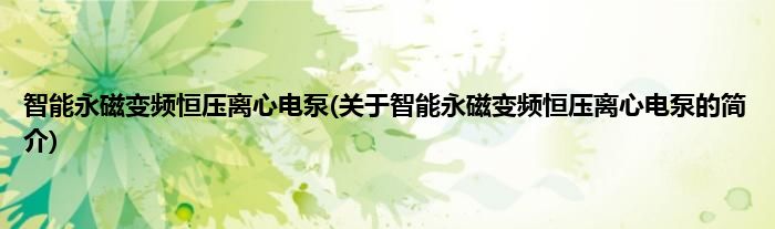 大家好,智能永磁变频恒压离心电泵,关于智能永磁变频恒压离心电泵的简介很多人还不知道,现在让我们一起来看看吧!