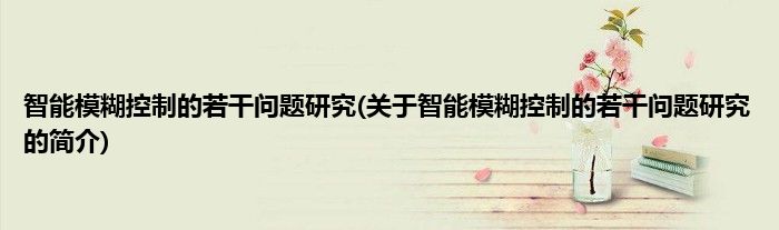 智能模糊控制的若干问题研究(关于智能模糊控制的若干问题研究的简介)