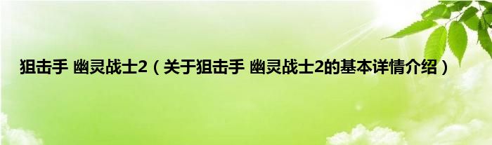 狙击手 幽灵战士2(关于狙击手 幽灵战士2的基本详情介绍)