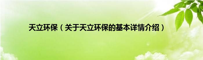 天立环保(关于天立环保的基本详情介绍)