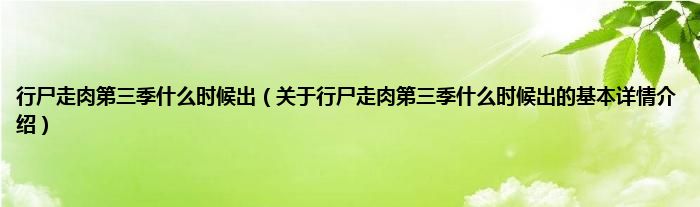 本文关于行尸走肉第三季什么时候出的基本详情介绍就讲解完毕,希望对大家有所帮助。