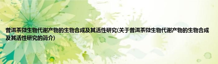 本文关于普洱茶微生物代谢产物的生物合成及其活性研究的简介就讲解完毕,希望对大家有所帮助。