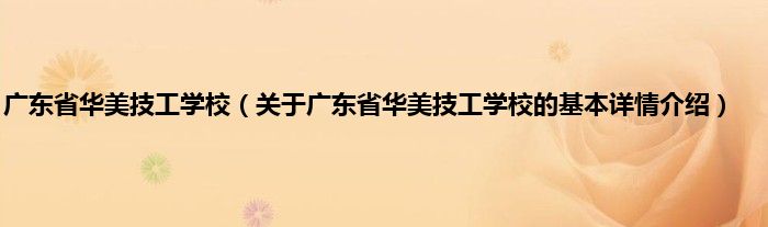 本文关于广东省华美技工学校的基本详情介绍就讲解完毕,希望对大家有所帮助。