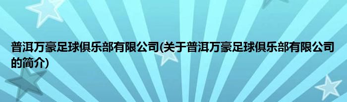 本文关于普洱万豪足球俱乐部有限公司的简介就讲解完毕,希望对大家有所帮助。