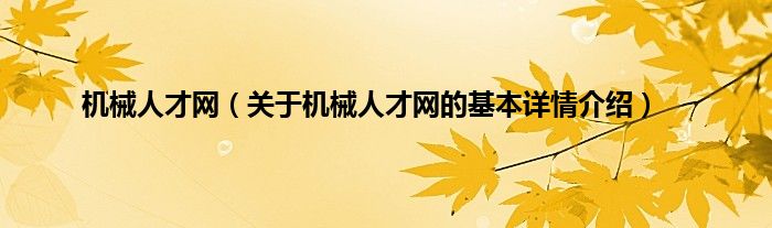 本文关于机械人才网的基本详情介绍就讲解完毕,希望对大家有所帮助。