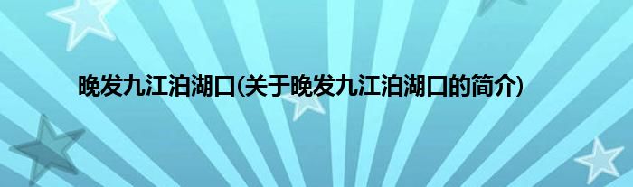 大家好,晚发九江泊湖口,关于晚发九江泊湖口的简介很多人还不知道,现在让我们一起来看看吧!
