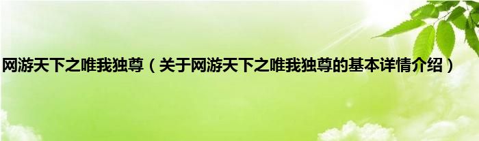 网游天下之唯我独尊(关于网游天下之唯我独尊的基本详情介绍)