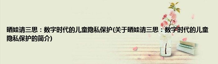 大家好,晒娃请三思:数字时代的儿童隐私保护,关于晒娃请三思:数字时代的儿童隐私保护的简介很多人还不知道,现在让我们一起来看看吧!