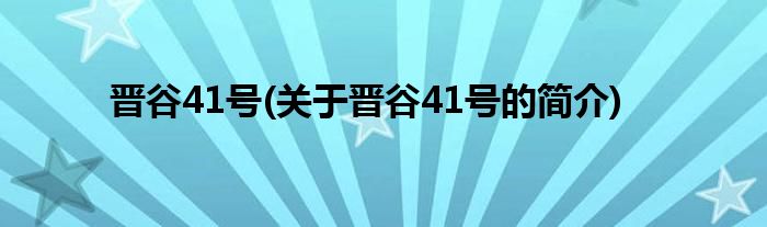 大家好,晋谷41号,关于晋谷41号的简介很多人还不知道,现在让我们一起来看看吧!