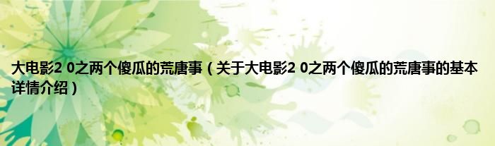 本文关于大电影2 0之两个傻瓜的荒唐事的基本详情介绍就讲解完毕,希望对大家有所帮助。