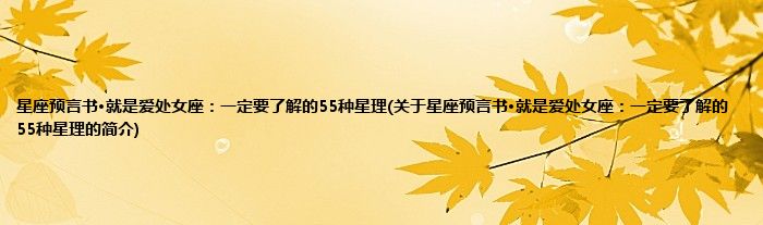 本文关于星座预言书·就是爱处女座:一定要了解的55种星理的简介就讲解完毕,希望对大家有所帮助。