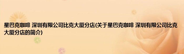 星巴克咖啡 深圳有限公司比克大厦分店(关于星巴克咖啡 深圳有限公司比克大厦分店的简介)