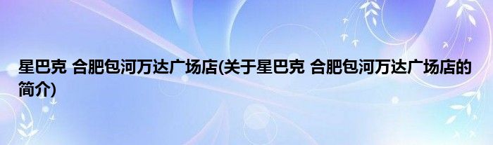 本文关于星巴克 合肥包河万达广场店的简介就讲解完毕,希望对大家有所帮助。