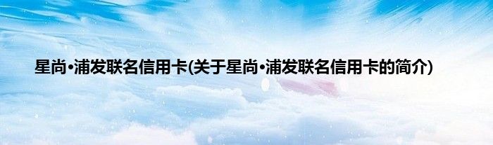 星尚·浦发联名信用卡(关于星尚·浦发联名信用卡的简介)