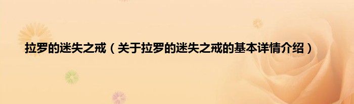 拉罗的迷失之戒(关于拉罗的迷失之戒的基本详情介绍)