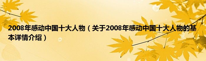 本文关于2008年感动中国十大人物的基本详情介绍就讲解完毕,希望对大家有所帮助。