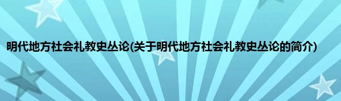 本文关于明代地方社会礼教史丛论的简介就讲解完毕,希望对大家有所帮助。