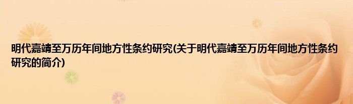 本文关于明代嘉靖至万历年间地方性条约研究的简介就讲解完毕,希望对大家有所帮助。